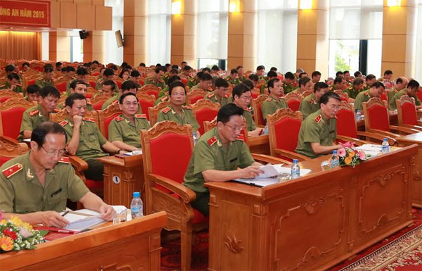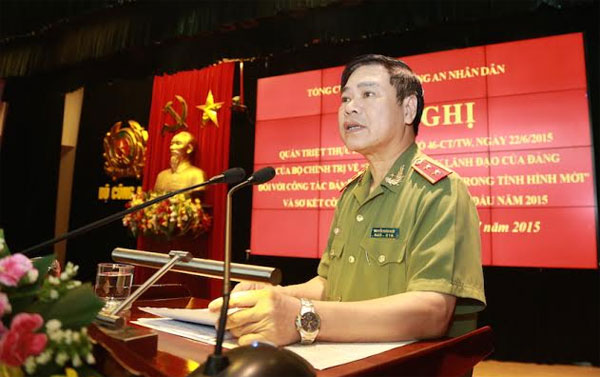 | Thiếu tướng Nguyễn Quang Chữ, Phó Tổng cục trưởng Tổng cục Chính trị CAND báo cáo tóm tắt kết quả công tác Công an và công tác XDLL CAND 6 tháng đầu năm 2015. |