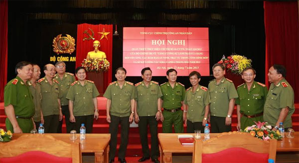| Trung tướng Trần Bá Thiều, Tổng cục trưởng Tổng cục Chính trị CAND cùng các đại biểu tại hội nghị. |