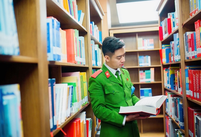 | Dương Hải Anh nghiên cứu tài liệu trên thư viện nghiệp vụ Cảnh sát. |