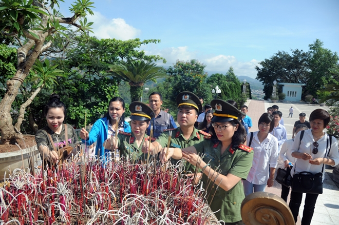 | Đoàn công tác làm lễ dâng hương tại Đài tưởng niệm những người thợ Việt Nam và chuyên gia Liên Xô hy sinh khi xây dựng Thủy điện Hòa Bình. |
