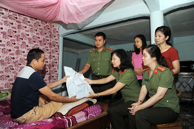 | Đoàn công tác tặng quà CBCS Công an tỉnh Hòa Bình có hoàn cảnh khó khăn. |