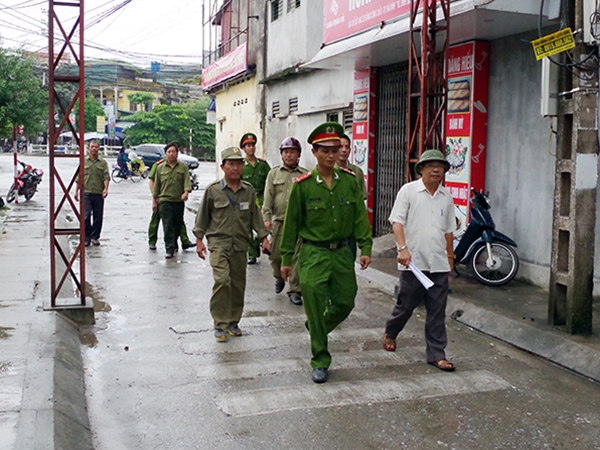 | Lực lượng Công an phường Quang Trung và dân phòng triển khai chốt trực trong ngày ra mắt. |