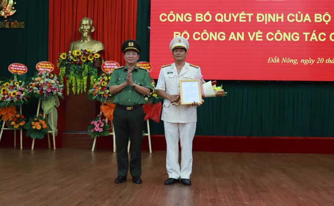 Tại buổi lễ, thừa ủy quyền của Bộ trưởng Bộ Công an, Đại tá Hồ Văn Mười đã trao quyết định của Bộ trưởng Bộ Công an điều động Thiếu tá Nguyễn Hữu Đức, Phó Giám đốc Công an tỉnh Hòa Bình đến nhận công tác và giữ chức vụ Phó Giám đốc Công an tỉnh Đắk Nông. Đồng thời thông báo quyết định của Bộ trưởng Bộ Công an về điều động Đại tá Phạm Tiến Triệu, Phó Giám đốc Công an tỉnh Đắk Nông đến nhận công tác giữ chức vụ Phó Giám đốc Công an tỉnh Đắk Lắk.
