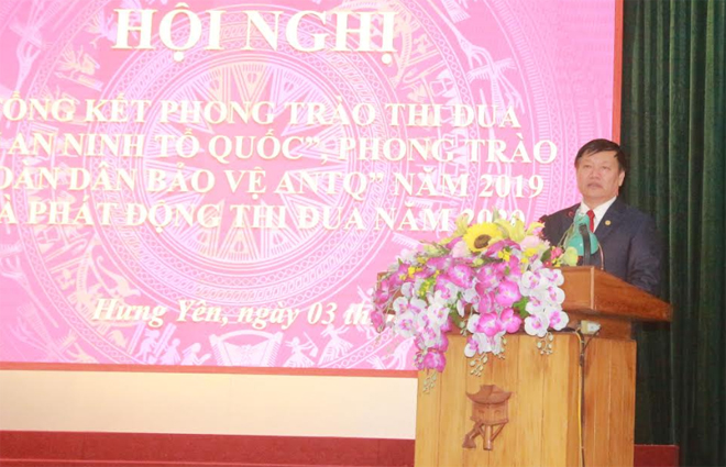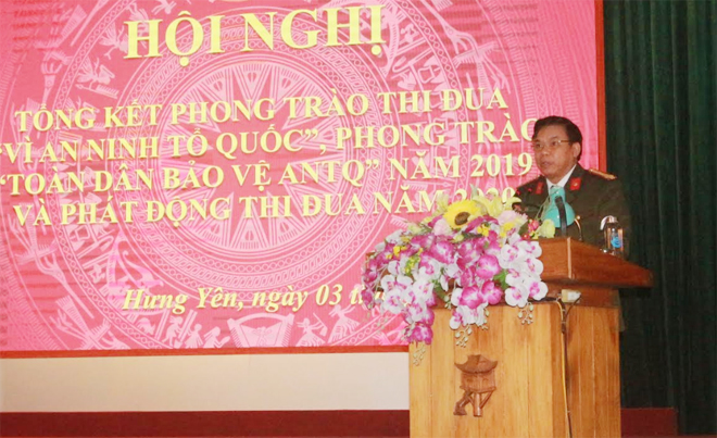 Tại hội nghị, thay mặt Đảng uỷ, lãnh đạo Công an tỉnh Hưng Yên, Đại tá Đỗ Đình Hào tiếp thu ý kiến chỉ đạo của đồng chí Chủ tịch UBND; đồng thời, phát động phong trào thi đua “Vì an ninh Tổ quốc”, phong trào Toàn dân bảo vệ an ninh Tổ quốc” năm 2020 và kêu gọi toàn thể cán bộ, chiến sĩ lực lượng Công an toàn tỉnh, lực lượng bảo vệ an ninh trật tự cơ sở nêu cao tinh thần trách nhiệm, đoàn kết nhất trí vượt qua mọi khó khăn, thách thức hoàn thành xuất sắc nhiệm vụ mà Đảng, Nhà nước và nhân dân giao phó, góp phần vào sự phát triển kinh tế xã hội của tỉnh.