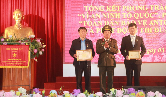 | Thừa uỷ quyền của Bộ trưởng bộ Công an, Đại tá Đỗ Đình Hào trao kỷ niệm chương “Bảo vệ an ninh Tổ quốc” tặng các cá nhân có thành tích trong phong trào. |