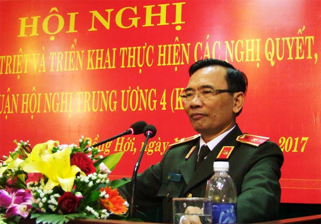 | Đồng chí Thiếu tướng Từ Hồng Sơn-Giám đốc Công an tỉnh Quảng Bình quán triệt Nghị quyết Trung ương 4, khóa XII đến cán bộ chủ chốt Công an Quảng Bình. |