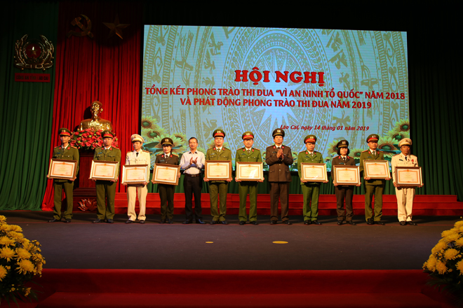 Cũng tại hội nghị, thừa sự ủy quyền của Bộ trưởng Bộ Công an, đồng chí Đại tá Trần Đức Việt đã trao tặng Cờ thi đua cho 4 tập thể, Danh hiệu Đơn vị Quyết thắng cho 11 tập thể và Danh hiệu Đơn vị Tiên tiến cho 13 tập thể đã có thành tích xuất sắc trong các mặt công tác Công an năm 2018.