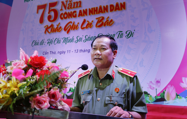 Thiếu tướng Nguyễn Văn Thuận, Giám đốc Công an thành phố phát biểu tại lễ bế mạc.