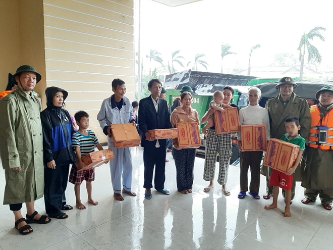 Để giúp đỡ người dân vùng ngập lụt, Công an tỉnh Thừa Thiên Huế đã vận chuyển và trao hơn 1.500 thùng mì tôm, 700 thùng nước suối; UBND tỉnh Thừa Thiên Huế trao hơn 3.000 suất quà gồm nhu yếu phẩm, nước uống đóng chai để kịp thời cung ứng cho người dân tại các khu vực bị ngập sâu, vùng rốn lũ của tỉnh.