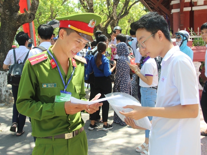 Đại tá Nguyễn Văn Thanh, Phó Giám đốc Công an tỉnh Thừa Thiên - Huế cho biết, Công an tỉnh đã giao Phòng An ninh chính trị nội bộ phối hợp với các đơn vị liên quan xây dựng các phương án bảo đảm tuyệt đối an toàn các khâu ra đề thi, sao in đề thi, vận chuyển đề thi, cử cán bộ tham gia giám sát chấm thi chặt chẽ. Công an các đơn vị, địa phương phối hợp chặt chẽ với các phòng nghiệp vụ của Công an tỉnh huy động lực lượng bảo vệ an toàn vòng trong và vòng ngoài các hội đồng coi thi, nắm chắc tình hình để phát hiện, xử lý kịp thời các biểu hiện tiêu cực.