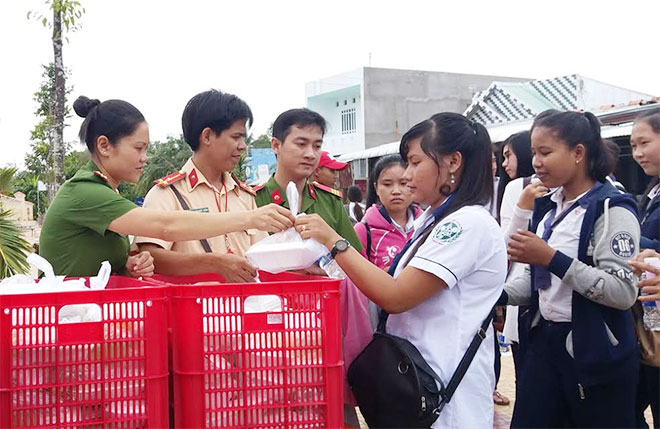 Lực lượng Công an phục vụ cơm miễn phí cho học sinh đi thi