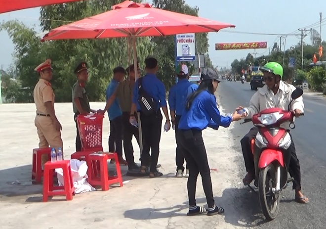- Công an Tiền Giang phát nước suối cho bà con về quê vui tết