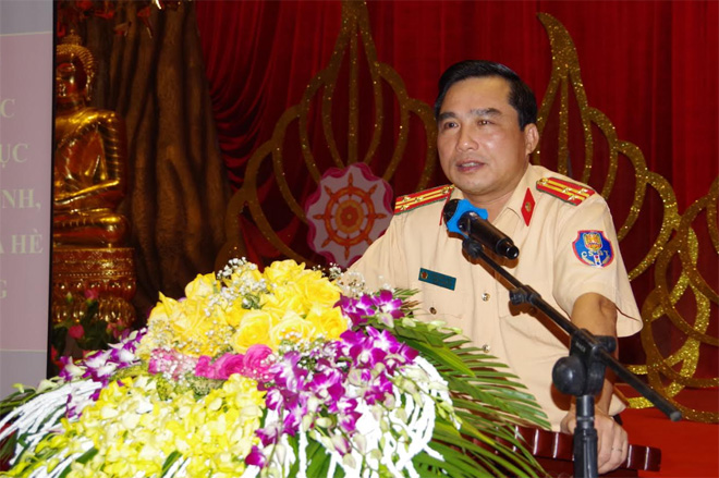 Tuyên truyền về ATGT cho học sinh, sinh viên tham gia khóa tu tại chùa Tam Chúc