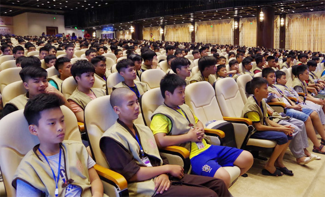 Phòng CSGT Công an tỉnh Hà Nam vừa tổ chức buổi tuyên truyền Luật Giao thông đường bộ cho hơn 1.500 khóa sinh là học sinh, sinh viên đến từ 30 tỉnh, thành trong cả nước đang tham gia khóa tu mùa hè tại chùa Tam Chúc, thị trấn Ba Sao, huyện Kim Bảng (Hà Nam).
