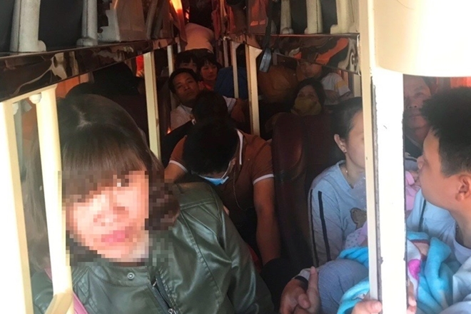 | Xe ô tô khách chở quá nhiều người so với quy định. |