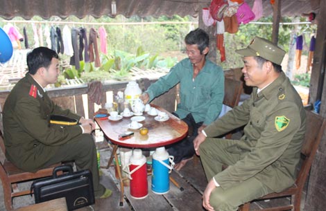 Công an huyện Chợ Đồn (Bắc Kạn) kết hợp với lực lượng Công an xã tuyên truyền, vận động người dân không sử dụng súng săn trái phép. |