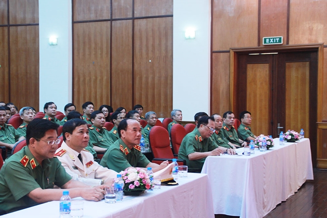 | Các đồng chí lãnh đạo Cục An ninh kinh tế tặng hoa, chúc mừng Thiếu tướng Nguyễn Đình Thuận. |