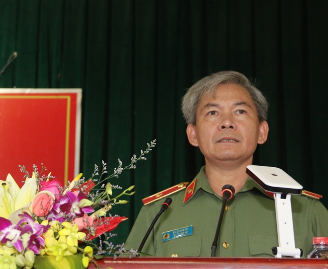 | Thiếu tướng Bùi Quang Hải, Cục trưởng Cục An ninh Tây Nam Bộ, phát biểu khai mạc Hội nghị. |