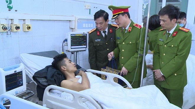 Thăm, động viên CBCS bị thương đang điều trị tại bệnh viện đa khoa tỉnh Thanh Hóa, đồng chí Cục trưởng Cục PCCC và CNCH Bộ Công an đã biểu dương tinh thần quả cảm, tấm gương tận tụy, trách nhiệm vì nước quên thân, vì dân quên mình của 3 CBCS, đồng thời gửi lời chia sẻ tới thân nhân 3 cán bộ bị thương, mong gia đình cố gắng vượt qua khó khăn, chăm lo sức khỏe để các đồng chí sớm bình phục, trở lại đơn vị công tác.