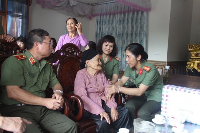 Thay mặt Đoàn công tác, Thiếu tướng Nguyễn Quang Trung, Phó Cục trưởng Cục Khoa học, Chiến lược và Lịch sử Công an đã thăm hỏi sức khỏe của mẹ Bùi Thị Tý; đồng thời bày tỏ lòng biết ơn, tri ân sự hy sinh và những đóng góp to lớn của các liệt sĩ, thương binh đối với sự nghiệp giải phóng dân tộc, thống nhất đất nước.