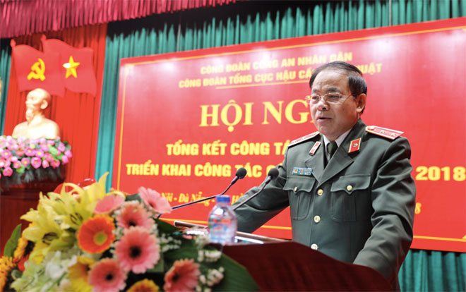 Phát biểu chỉ đạo tại Hội nghị, Trung tướng Nguyễn Văn Chuyên, Phó Tổng cục trưởng Tổng cục HC-KT biểu dương những nỗ lực và thành tích đã đạt được của Công đoàn Tổng cục trong năm 2017.