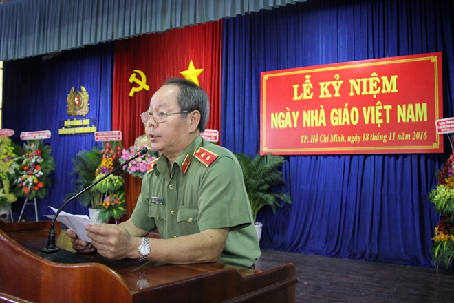 Trường đã đào tạo được hàng vạn lượt cán bộ An ninh đang vững vàng, dũng cảm thực hiện tốt nhiệm vụ bảo vệ An ninh Tổ quốc; nhiều đồng chí đã và đang giữ những cương vị quan trọng của Đảng, Nhà nước và của Ngành. Thay mặt Đảng ủy, Lãnh đạo Tổng cục Chính trị CAND, tôi nhiệt liệt biểu dương thành tích của Nhà trường, biểu dương những nỗ lực cố gắng, những cống hiến “tận tụy, quên mình” của đội ngũ thầy, cô giáo Trường Đại học ANND".