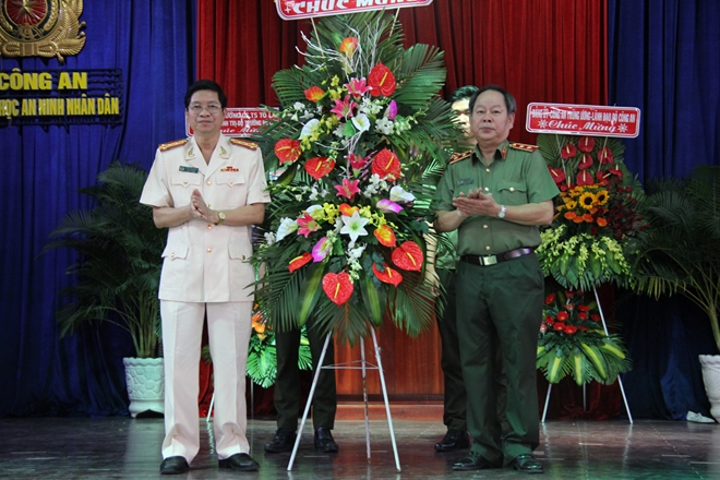 Đại tá PGS-TS Đặng Văn Đoài-Hiệu trưởng Nhà trường nhận Lẵng hoa chúc mừng do Trung tướng Nguyễn Thanh Nam trao tặng.