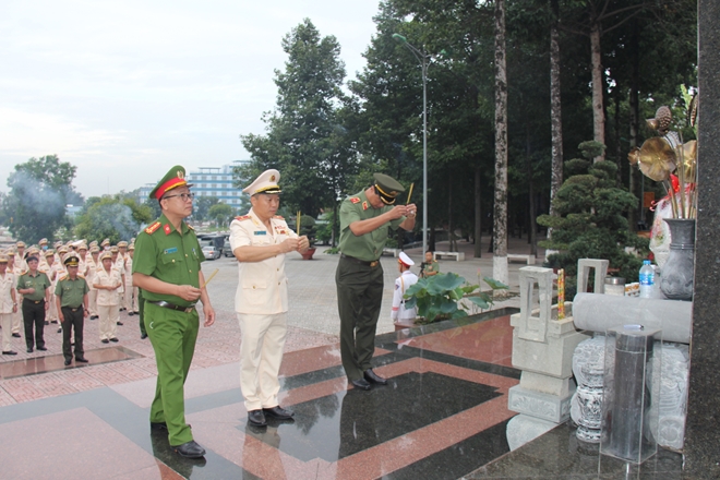 | Thứ trưởng Nguyễn Văn Thành cùng các đại biểu tham dự đại hội làm lễ dâng hương tại Tượng đài Bác Hồ tại Trường ĐH ANND. |