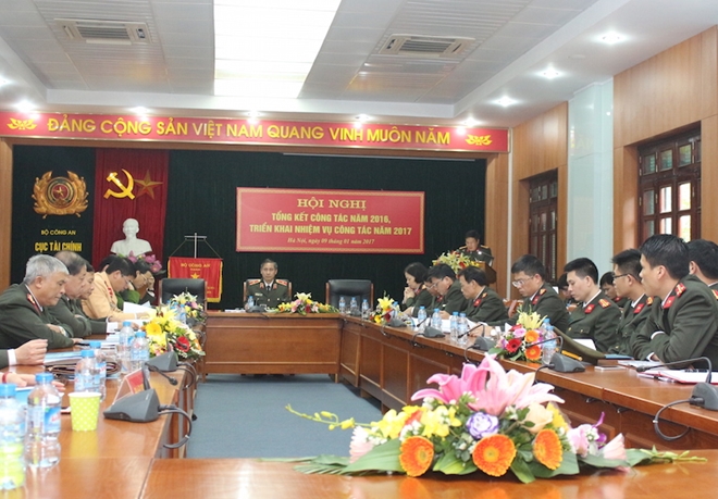 Báo cáo tóm tắt tổng kết công tác năm 2016, phương hướng, nhiệm vụ công tác năm 2017, Đại tá Ngô Xuân Liệu, Phó Cục trưởng Cục Tài chính cho biết, trong năm qua mặc dù ngân sách nhà nước còn nhiều khó khăn, chỉ tiêu giao cho Bộ Công an chỉ đáp ứng được 80% nhu cầu tối thiểu theo dự toán nhưng Cục Tài Chính đã tham mưu cho Đảng uỷ Công an Trung ương và lãnh đạo Bộ đảm bảo kinh phí, đáp ứng các yêu cầu chi tiêu thường xuyên và đột xuất, phục vụ công tác, chiến đấu và xây dựng lực lượng.