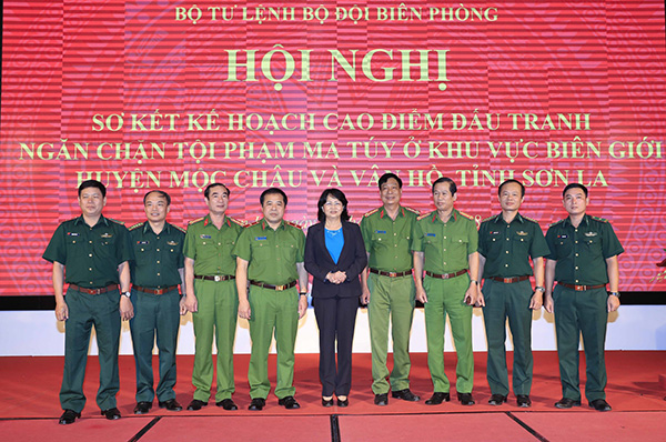 | Quyền Chủ tịch nước Đặng Thị Ngọc Thịnh dự Hội nghị sơ kết kế hoạch cao điểm đấu tranh ngăn chặn tội phạm ma túy ở khu vực biên giới 2 huyện Mộc Châu, Vân Hồ (tỉnh Sơn La). |