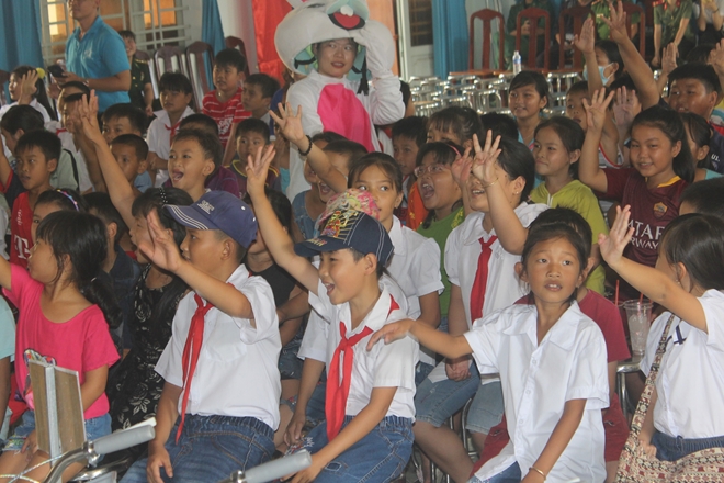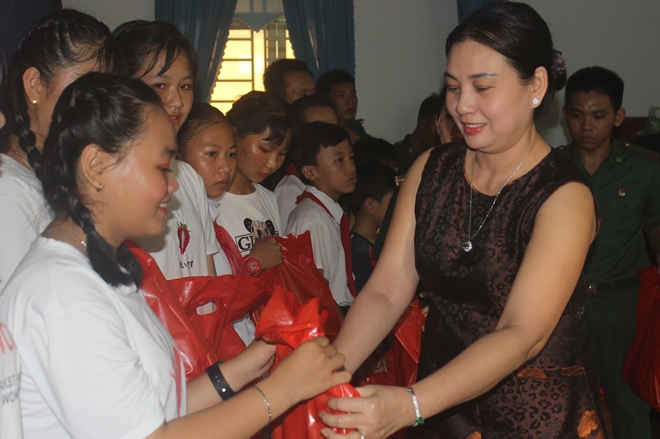 500 phần quà, mỗi phần trị giá 500 ngàn đồng bao gồm: Bánh kẹo, tập viết, đồ dùng học tập...và đặc biệt là 10 chiếc xe đạp do Chi hội từ thiện "trái tim vàng" trao tặng cho các em có hoàn cảnh khó khăn vươn lên học giỏi.