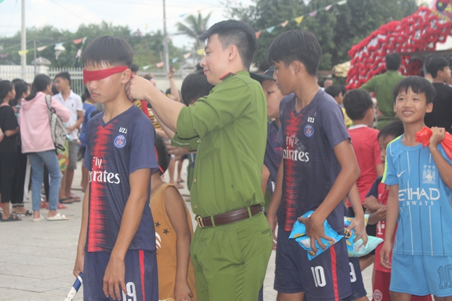 | Trò bịt mắt đập bóng khiến các em rất hào hứng |