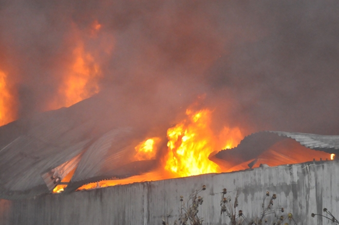 | Ngọn lửa bùng phát dữ dội trong đêm. |