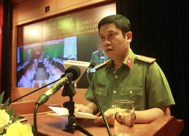 Đại tá Nguyễn Hồng Nguyên, Phó Chánh Văn phòng Bộ Công an nêu chủ trương của Đảng ủy Công an Trung ương, Bộ Công an trong phê duyệt triển khai xây dựng trụ sở, nhà ở công vụ cho Công an xã biên giới. |