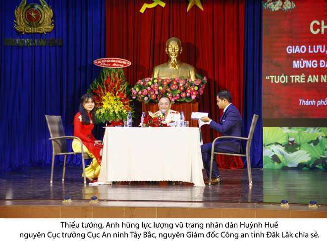 Nhân chứng sống thứ 2 mà Tuổi trẻ ĐH ANND được gặp gỡ là Thiếu tướng, Anh hùng lực lượng vũ trang nhân dân Huỳnh Huề - nguyên Cục trưởng Cục An ninh Tây Bắc, nguyên Giám đốc Công an tỉnh Đăk Lăk.
