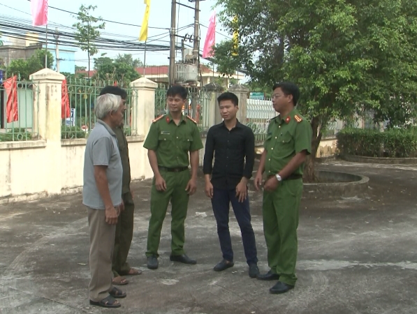 | Công an tỉnh Ninh Bình phối hợp với các đơn vị chức năng động viên, giúp đỡ anh Tống Văn Thế (áo đen) có việc làm ổn định |