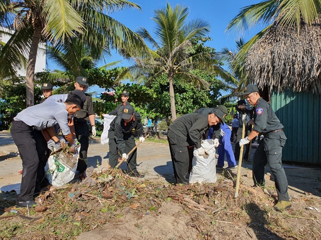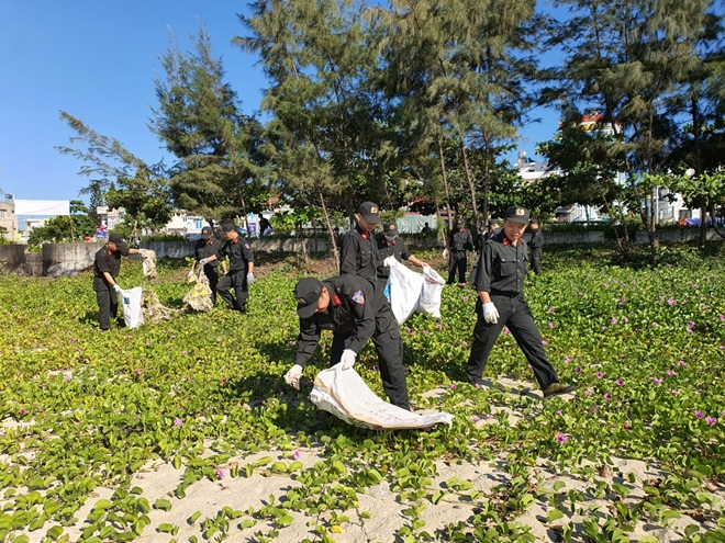 Đặc biệt hơn, ngay từ 6h sáng ngày 16/7 hơn 50 cán bộ chiến sĩ của phòng CSCĐ Công an TP Đà Nẵng đã tham gia phối hợp cùng với công ty Vệ sinh môi trường và người dân TP Đà Nẵng dọn vệ sinh, làm sạch môi trường tại gần 5km bãi biển Phạm Văn Đồng và dọc tuyến đường Hoàng Sa (TP Đà Nẵng). Đây là hoạt động tình nguyện của cán bộ chiến sĩ Phòng CSCĐ Công an TP Đà Nẵng thể hiện “Hành động vì môi trường – trách nhiệm của chúng ta”, chung tay hành động làm sạch bãi biển.