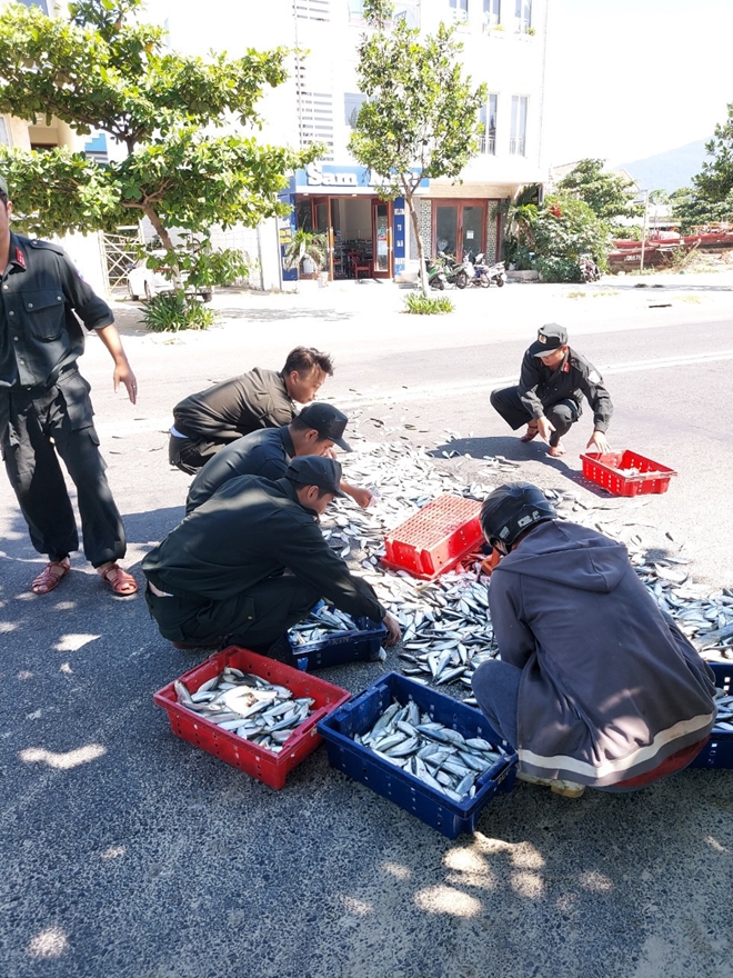Các chiến sĩ Cảnh sát cơ động (CSCĐ), Công an TP Đà Nẵng gặp ngư dân bị tai nạn giao thông, đổ cá xuống đường đã dừng lại giúp dân... |