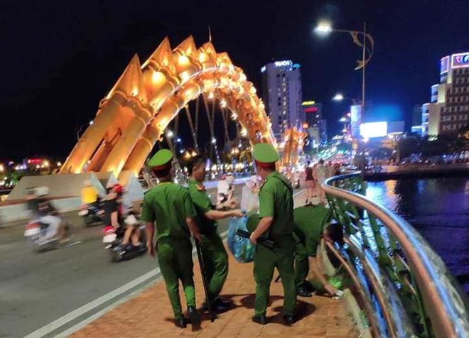 | (ảnh Công an Đà Nẵng): Một hình ảnh để lại ấn tượng đẹp trong lòng du khách sau mỗi đêm thi trình diễn pháo hoa kết thúc đó chính là các chiến sĩ Cảnh sát bảo vệ, lực lượng công an các quận Sơn Trà, Hải Châu đã sát cánh cùng với các công nhân vệ sinh của Cty CP Môi trường đô thị Đà Nẵng cùng với các tổ chức, nhóm tình nguyện vì môi trường tỏa ra các đường, khu vực khán đài, khu vực cầu Rồng, cầu Sông Hàn phân loại, vận chuyển rác để giữ gìn vệ sinh môi trường cho thành phố. |