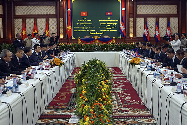 | Hội đàm giữa đoàn đại biểu cấp cao Bộ Công an Việt Nam và đoàn đại biểu cấp cao Bộ Nội vụ Campuchia. |