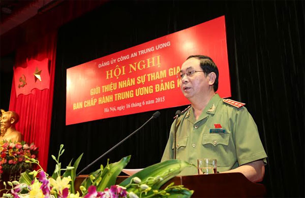 | Đại tướng Trần Đại Quang, Ủy viên Bộ Chính trị, Bí thư Đảng ủy Công an Trung ương, Bộ trưởng Bộ Công an phát biểu tại Hội nghị. |
