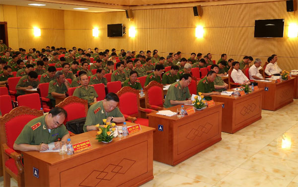 Đại tướng Trần Đại Quang, Ủy viên Bộ Chính trị, Bí thư Đảng ủy Công an Trung ương, Bộ trưởng Bộ Công an với các đại biểu tham dự Hội nghị. |