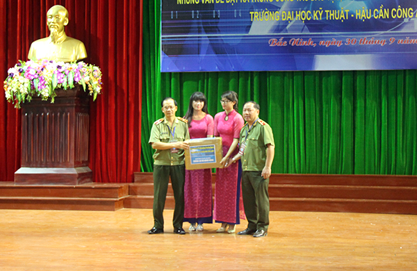 Tại Hội thảo, được sự ủy quyền của Đại tướng, GS,TS Trần Đại Quang, Ủy viên Bộ Chính trị, Bí thư Đảng ủy Công an Trung ương, Bộ trưởng Bộ Công an, đồng chí Cục trưởng Cục An ninh mạng đã trao tặng Trường Đại học Kỹ thuật - Hậu cần Công an nhân dân 50 cuốn sách “Không gian mạng - Tương lai và hành động” do GS, TS Trần Đại Quang là tác giả, được NXB Công an nhân dân phát hành vào tháng 5/2015. Đây là sự quan tâm của đồng chí Bộ trưởng đối với sự nghiệp giáo dục, đào tạo của các trường Công an nhân dân nói chung và của Trường Đại học Kỹ thuật - Hậu cần Công an nhân dân nói riêng.
