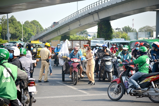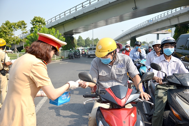 - CSGT TP Hồ Chí Minh phát khẩu trang miễn phí cho người dân