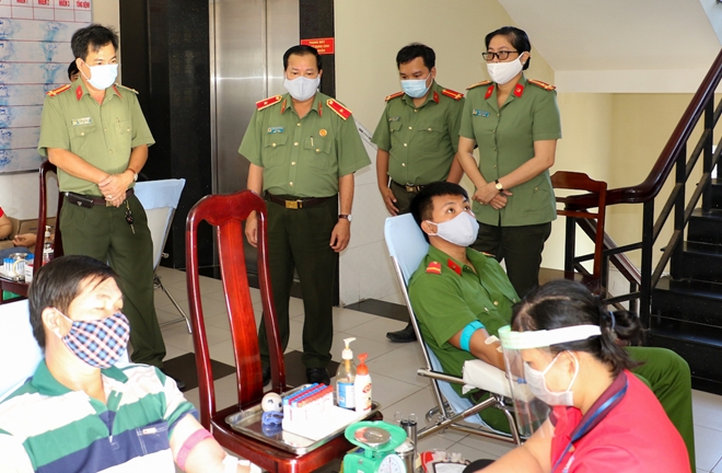 Thiếu tướng Nguyễn Văn Thuận, Giám đốc Công an thành phố đã đến kiểm tra, ân cần thăm hỏi, động viên, biểu dương tinh thần hiến máu tình nguyện của CBCS và mong muốn, phong trào này tiếp tục được nhân rộng trong thời gian tới.