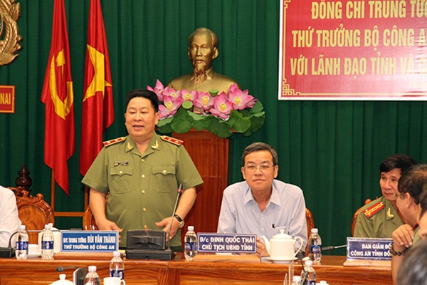 Cùng tham gia buổi làm việc với Thứ trưởng Bùi Văn Thành còn có đại diện một số Sở, ngành của Đồng Nai; lãnh đạo các Tổng cục, Cục, Vụ liên quan và Ban Giám đốc, chỉ huy các đơn vị Công an Đồng Nai.