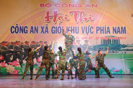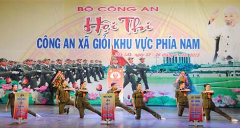 : Một phần thi của đoàn Công an tỉnh Bình Phước, đơn vị mở đầu cho hội thi. |
