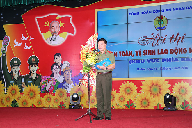 Đồng chí Vũ Mạnh Hà, Chủ tịch Công đoàn CAND, Trưởng Ban tổ chức Hội thi phát biểu khai mạc khẳng định, Hội thi ATVSLĐ trong Công đoàn CAND là đợt sinh hoạt chính trị nhằm đẩy mạnh công tác tuyên truyền các chủ trương của Đảng, chính sách của Nhà nước, quy định của lực lượng CAND về công tác ATVSLĐ;