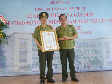 | Trung tướng Lê Văn Minh trao Quyết định công nhận của Bộ Công an cho Công trình trụ sở làm việc Cục Kho vận TP HCM. |