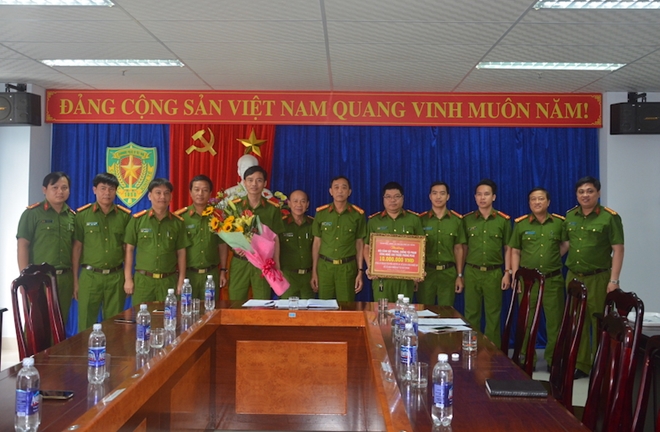 Đại tá Trần Mưu- Phó Giám đốc Công an TP đã biểu dương thành tích của Phòng Cảnh sát Kinh tế và trao số tiền 10 triệu đồng của Giám đốc Công an TP thưởng nóng cho đơn vị về thành tích trên.